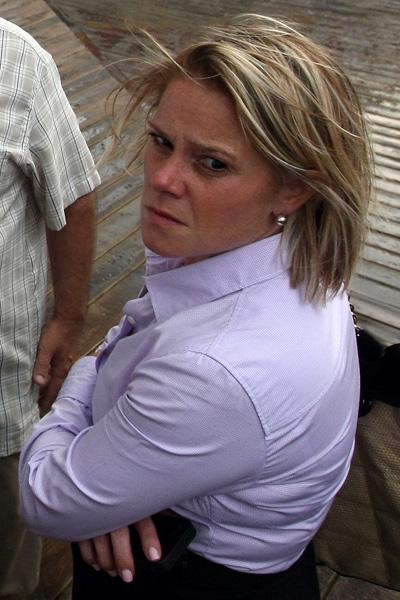 This Sept. 12, 2013 photo provided by the Office of the Governor of New Jersey shows Deputy Chief of Staff Bridget Anne Kelly during a tour with Gov. Chris Christie of the Seaside Heights, N.J. boardwalk, after it was hit by a massive fire. Christie fired Kelly Thursday, Jan. 9, 2014, and apologized over and over for his staff’s “stupid” behavior, insisting during a nearly two-hour news conference that he had no idea anyone around him had engineered traffic jams as part of a political vendetta against a Democratic mayor. (AP Photo/Office of Gov. Chris Christie, Tim Larsen)