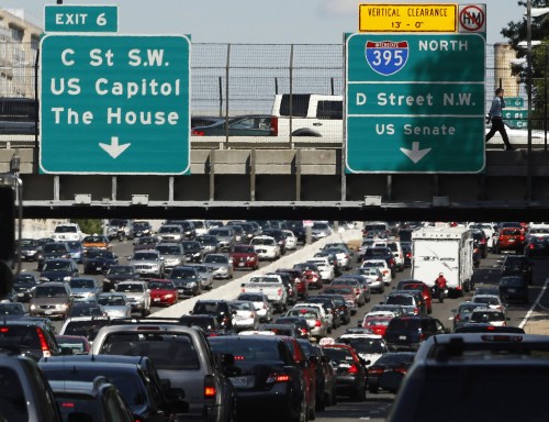 Gridlock traffic is pictured on highway 395 as people evacuate Washington after an earthquake